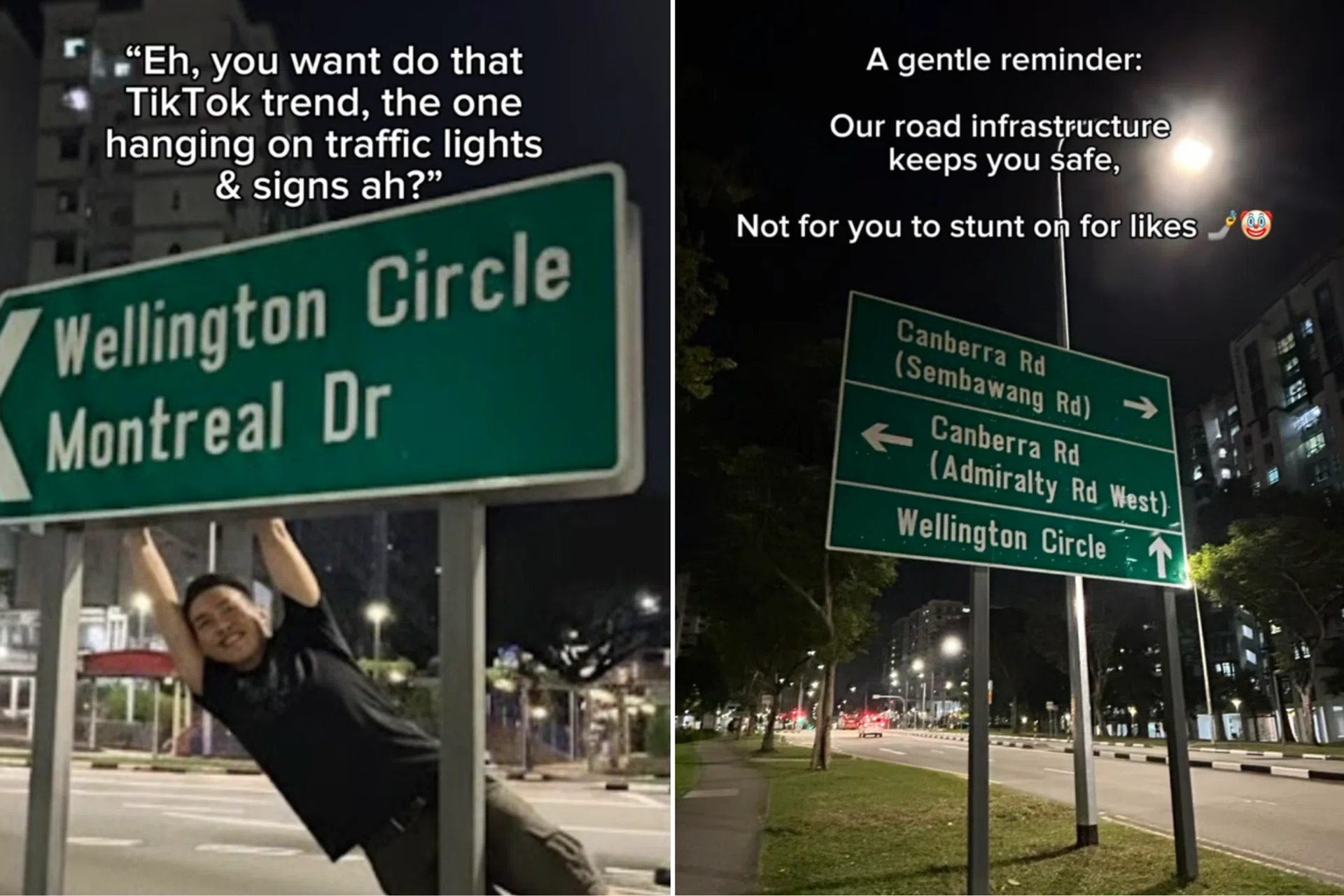 On Oct 14, the Land Transport Authority (LTA) warned against hanging on to traffic lights, street signs, and other road infrastructure after the trend began gaining traction locally.
