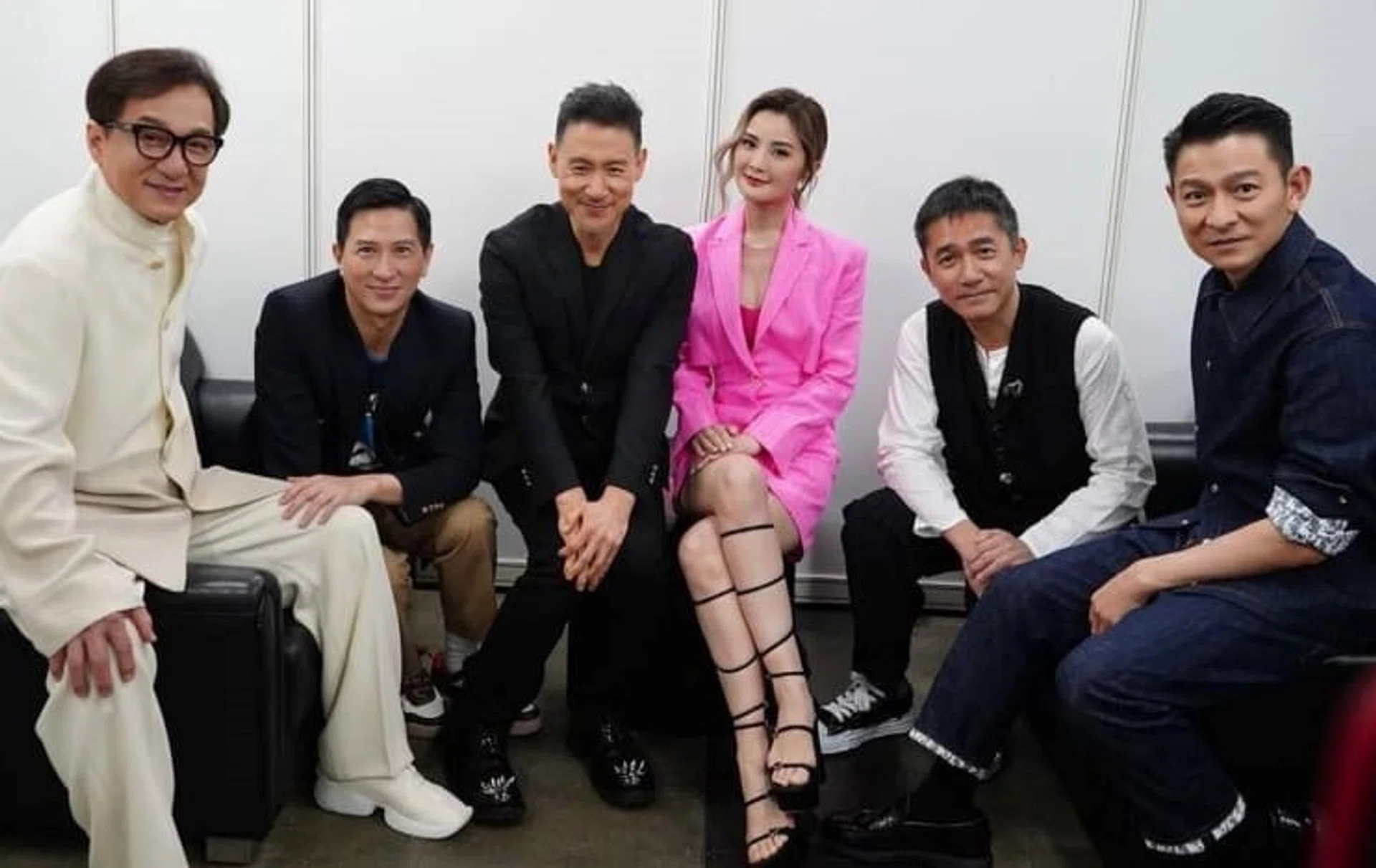 In one picture, she is seen seated with five iconic stars in the Hong Kong showbiz - actor Nick Cheung, singer Jacky Cheung, veteran actor Tony Leung, actor Andy Lau, and action star Jackie Chan.