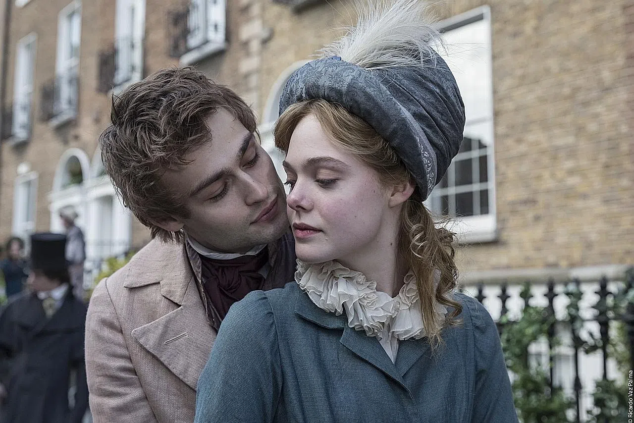 Both actors look fabulous together - Booth is drop-dead dashing while Fanning is picture-perfect in her period frocks (although she sports some rather modern-looking beanies).