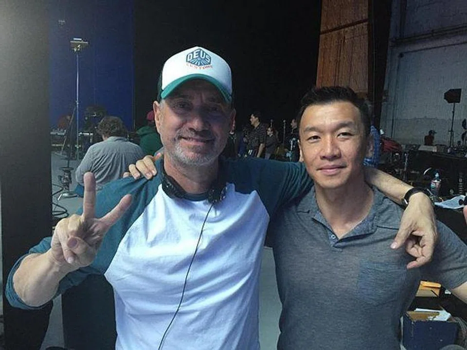 DESTRUCTION: Independence Day: Resurgence director Roland Emmerich with Singaporean actor Chin Han who has role in the movie. PHOTO: INSTAGRAM