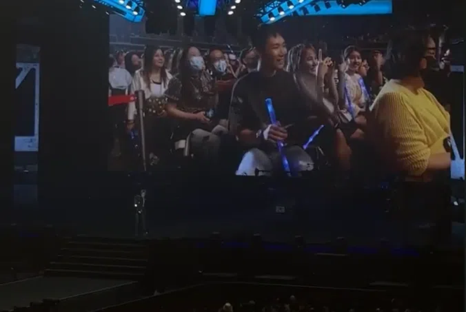 In a video recorded by YES 933 DJ Joey Tay and shared by 8days, Xue zooms in on a random concertgoer and asks if he has the habit of choping seats.