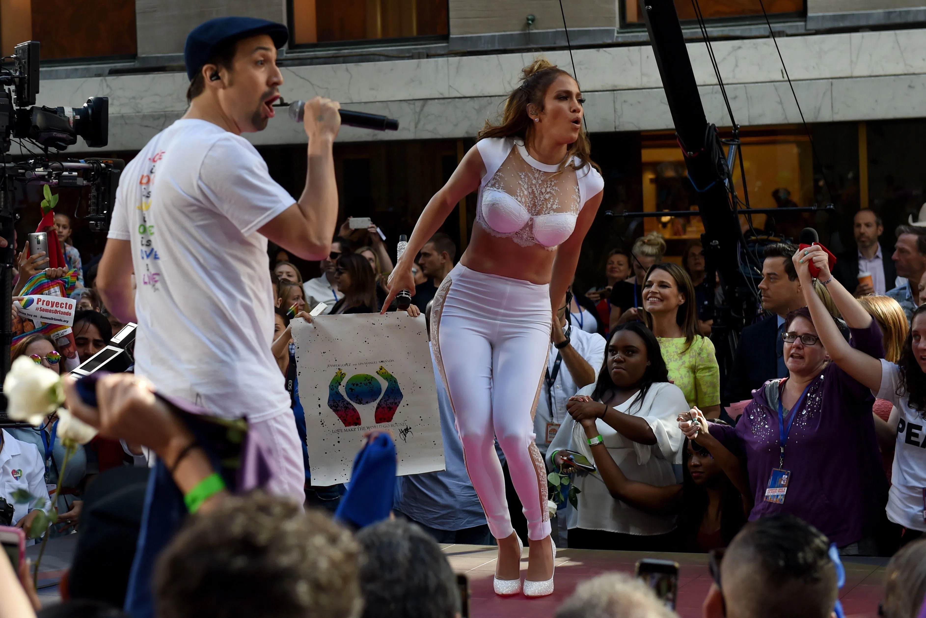 US singer Jennifer Lopez and US Broadway star Lin-Manuel Miranda performed their new tribute single, Love Make The World Go Round, live for the first time on the Today show on Monday.