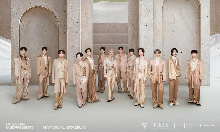 Tickets to their show at the much larger National Stadium will range from $168 to $388 and will go on general sale on Nov 15 at 10am via Ticketmaster. The world tour will not include member Jeonghan, who enlisted for South Korea's mandatory military service in September, and Chinese member Jun, who has conflicting acting commitments.