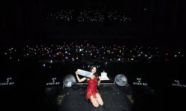 Solar's gig was staged on the same day as one of the National Day Parade previews at the Padang. In another video posted, she wished Singapore a happy birthday.