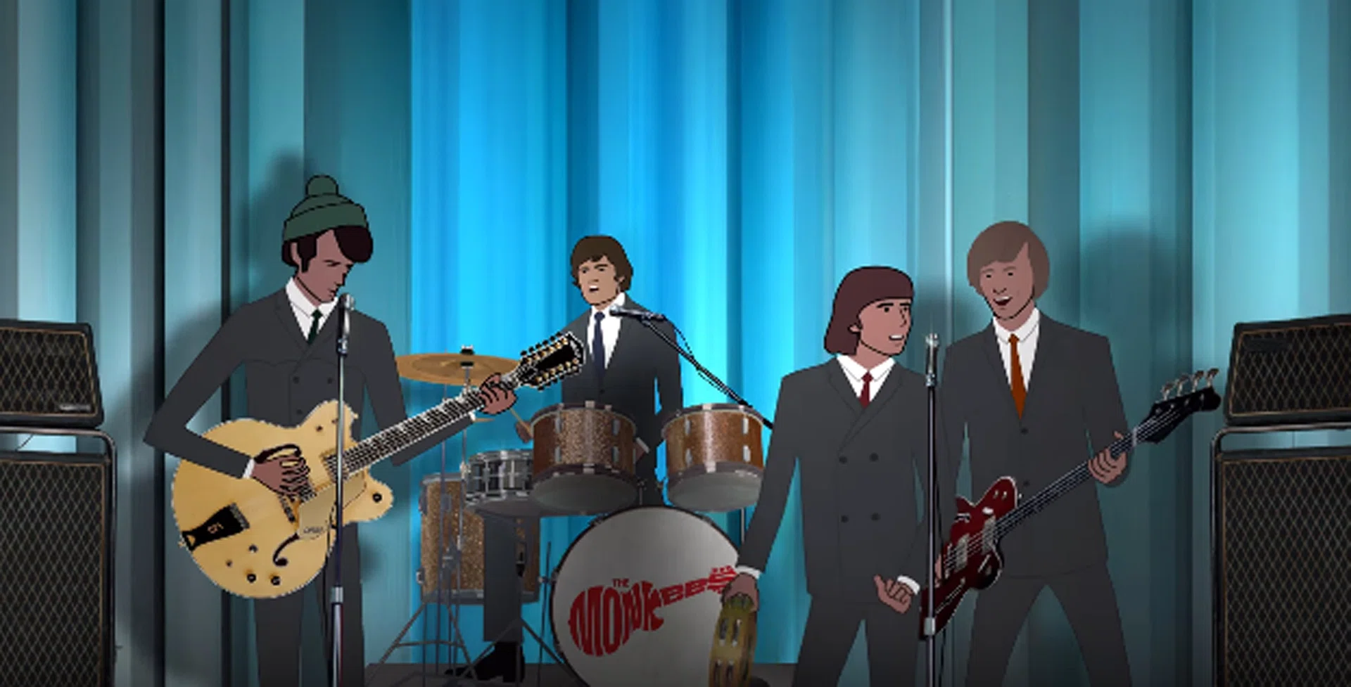 Even in their cartoon forms, The Monkees are determined to remind fans that they are still very much a 1960s rock band.
