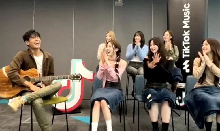 In a video Hartono shared on his social media on Feb 20, the 32-year-old musician is seen charming the K-pop girl group at the TikTok Singapore office.
