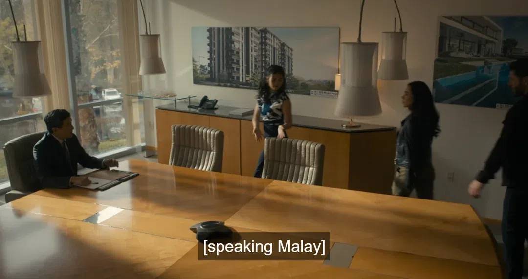 However, he is depicted as speaking only Malay and requiring an interpreter (played by Singaporean actress Valerie Loo) to communicate with the English-speaking investigators.