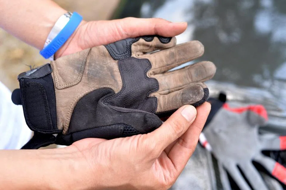 The motocross glove (below) took the most beating, sustaining two puncture marks on the palm and the base of the middle finger.