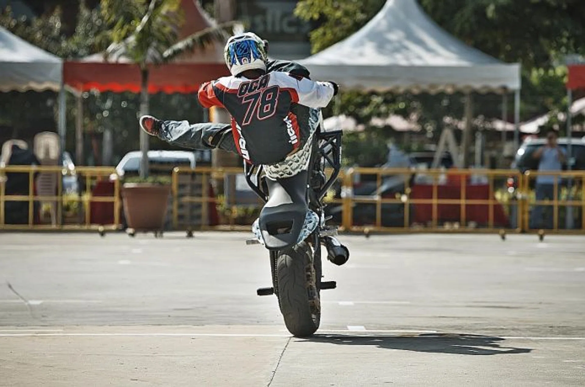 "We (stunt riders) need to be flexible, so we cannot wear racing suits because of their stiffness," he says.