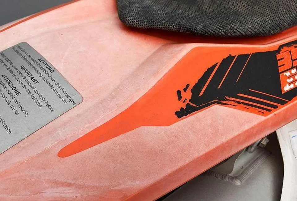 It lost its shine - I almost did not recognise my dirt bike. The deep orange sheen on the plastic parts has faded.