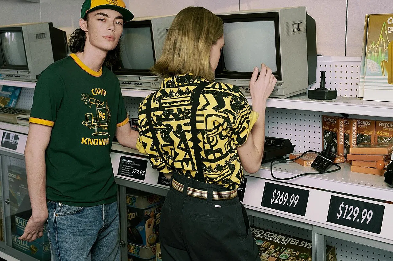 They include the Aztec Print Shirt and the El Pleated Jean worn by Eleven, and the trucker hat and graphic Camp Know Where Ringer Tee worn by Dustin.