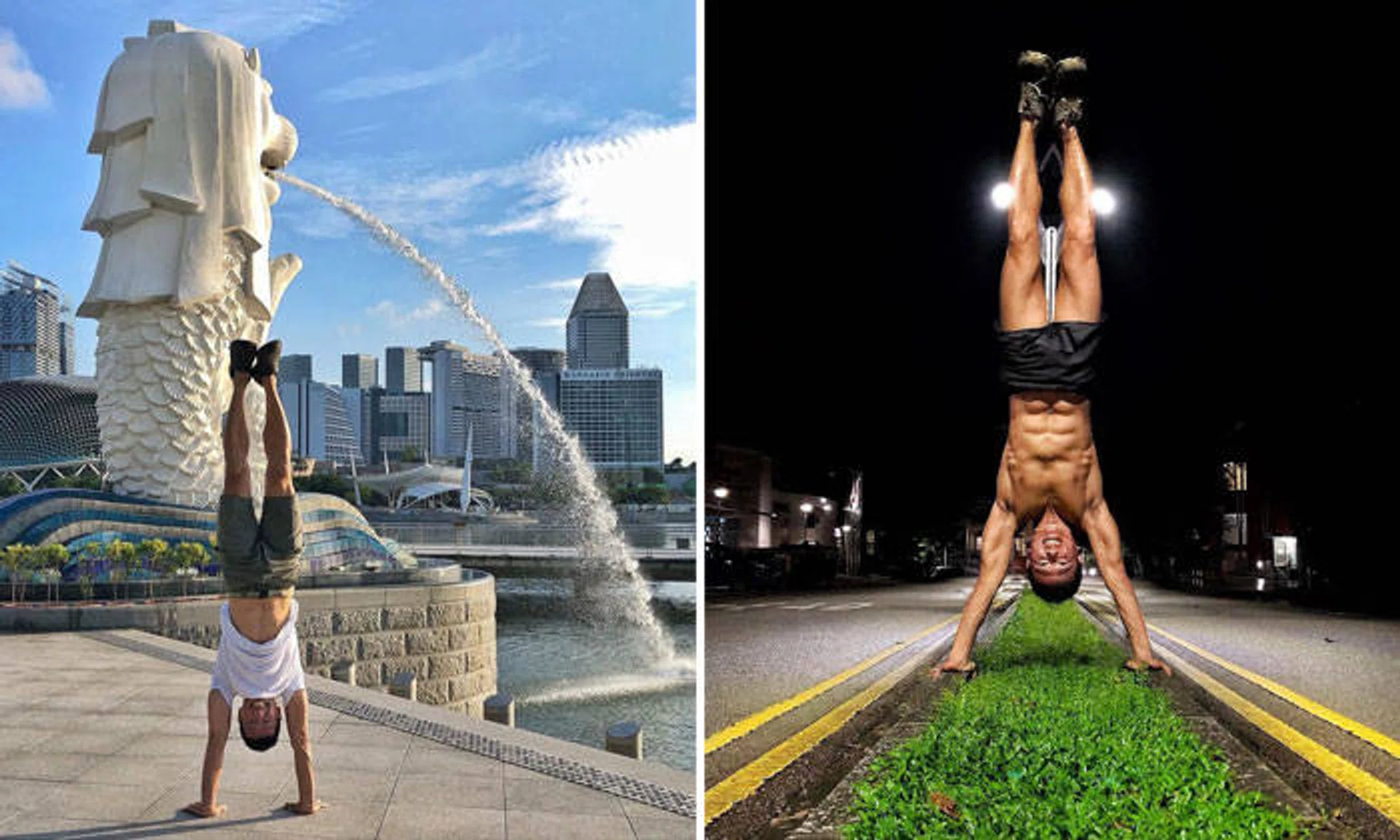 Loke, who also goes by the moniker FreeMan Loke, has gained a modest following on Instagram by posting photos of himself doing handstands all over the island.