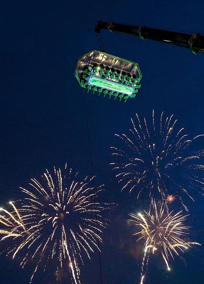 UPLIFTING: A crane is used to lift the platform, which can seat up to 22 diners, 45 metres into the air.