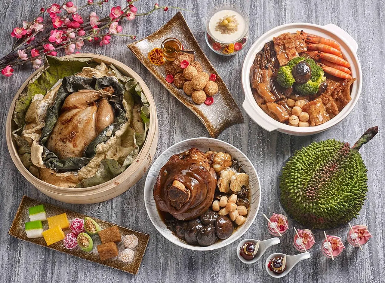 Its halal-certified buffet spread (from $78) will be an auspicious one, with dishes such as Kampong Chicken Ballotine in Collagen Herbal Broth, Stewed Korean Abalone on Egg White "Cloud", and Honey and Soya Glazed Veal Leg.
