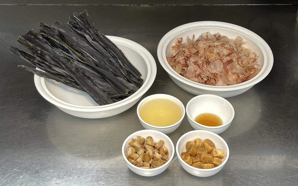 He shared the stock recipe - which calls for dried scallops, dried whelk and kombu from Japan - with his wife. The natural umami means she needs less salt and soya sauce when using the stock for dishes such as mee hoon kueh and steamed fish.