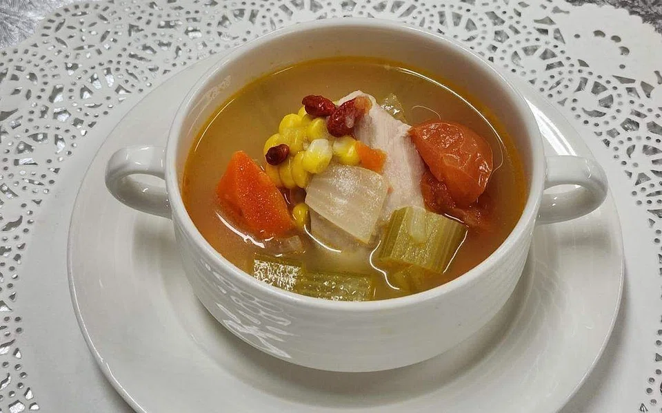 In this recipe by the Food Services Department, Changi General Hospital, this nourishing soup is packed with vitamins, minerals and dietary fibre. For more flavour, blend half of the cooked vegetables before adding them back into the soup. The soup is also suitable for babies, children and the elderly. For a vegetarian version, replace the meat with tofu for protein.