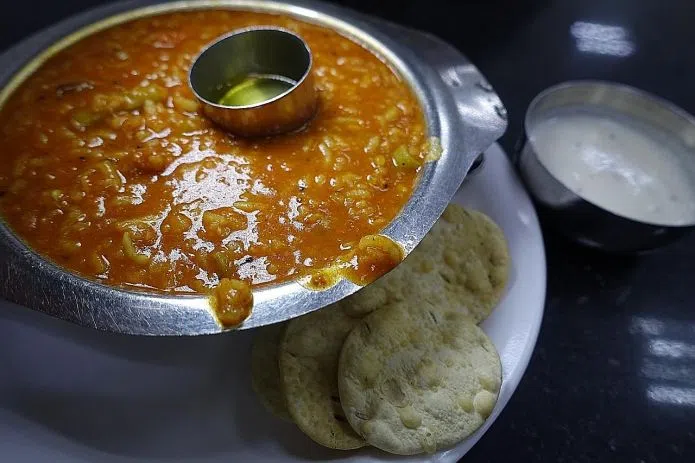 It comes nicely spiced and with lentils, vegetables, accented with nutmeg and lifted by tamarind pulp.