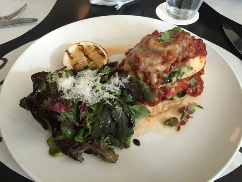 "The Chicken Parmigiano ($29) has two massive hunks of chicken. It's like eating a poultry bunk bed!"