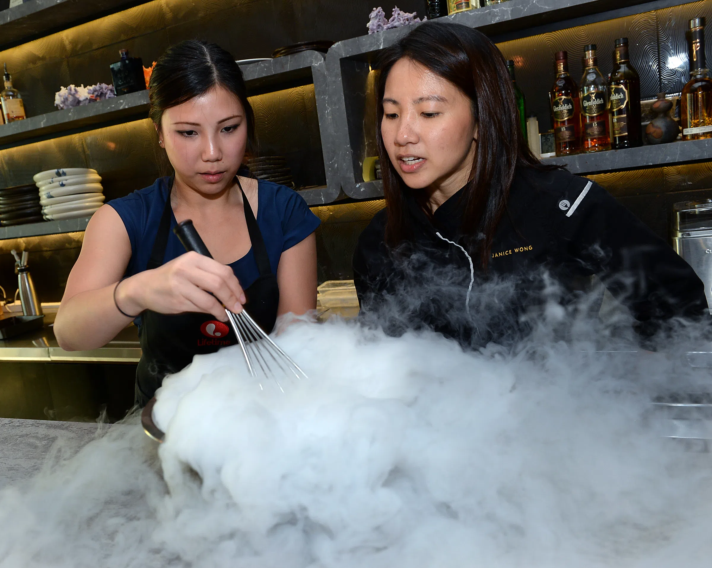 The 24-year-old Vietnamese-Chinese Australian, who is known as this season's "dessert queen", was in town last week for a media session held at 2am:dessertbar at Holland Village, where she whipped up Chocolate Mousse Cake with freshly churned Whisky Ice Cream - with a little help from Wong - for guests.