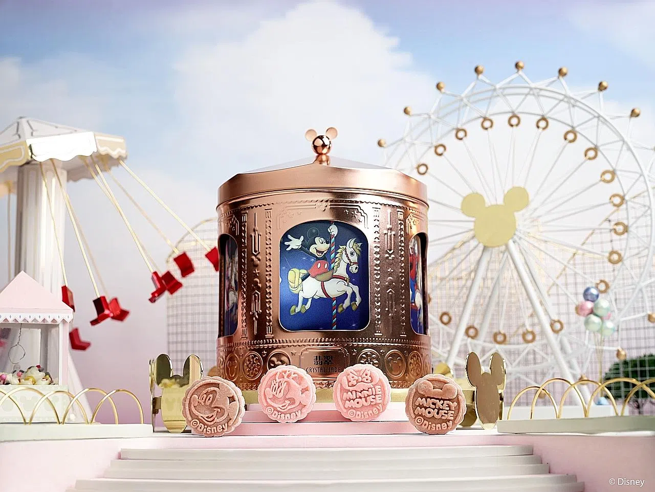 Crystal Jade's Mickey and Friends Musical Carousel Collection ($88 for box of eight) comes in an actual musical carousel mooncake box which is lit from within. Inside, you will get two flavours: Pandan Lotus with Gula Melaka and Chocolate Manuka Honey .