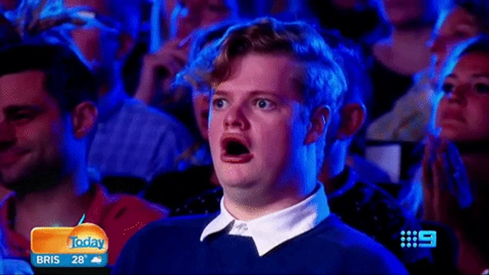 An audience member, known as Promo Guy, gives a whole range of reactions from confusion to astonishment to being the visual definition of flabbergasted.