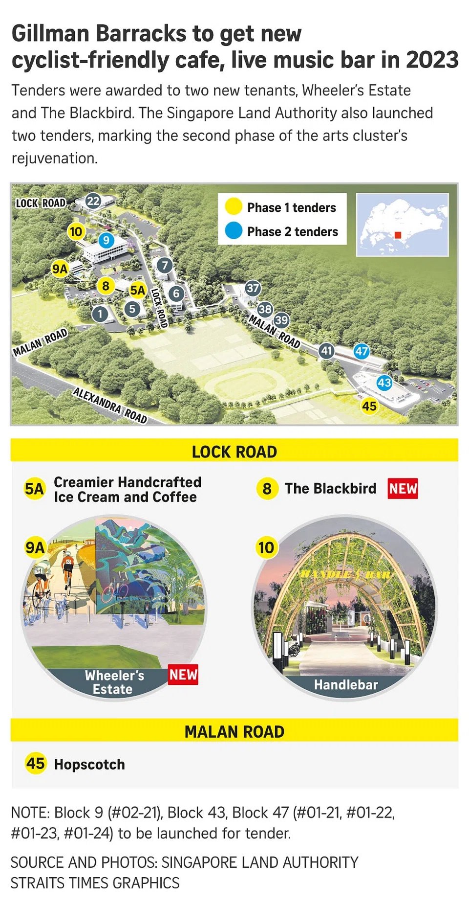 Visitors to Gillman Barracks can look forward to a new cyclist-friendly cafe and live music bar in 2023, as part of plans to rejuvenate the area into a lifestyle enclave.
