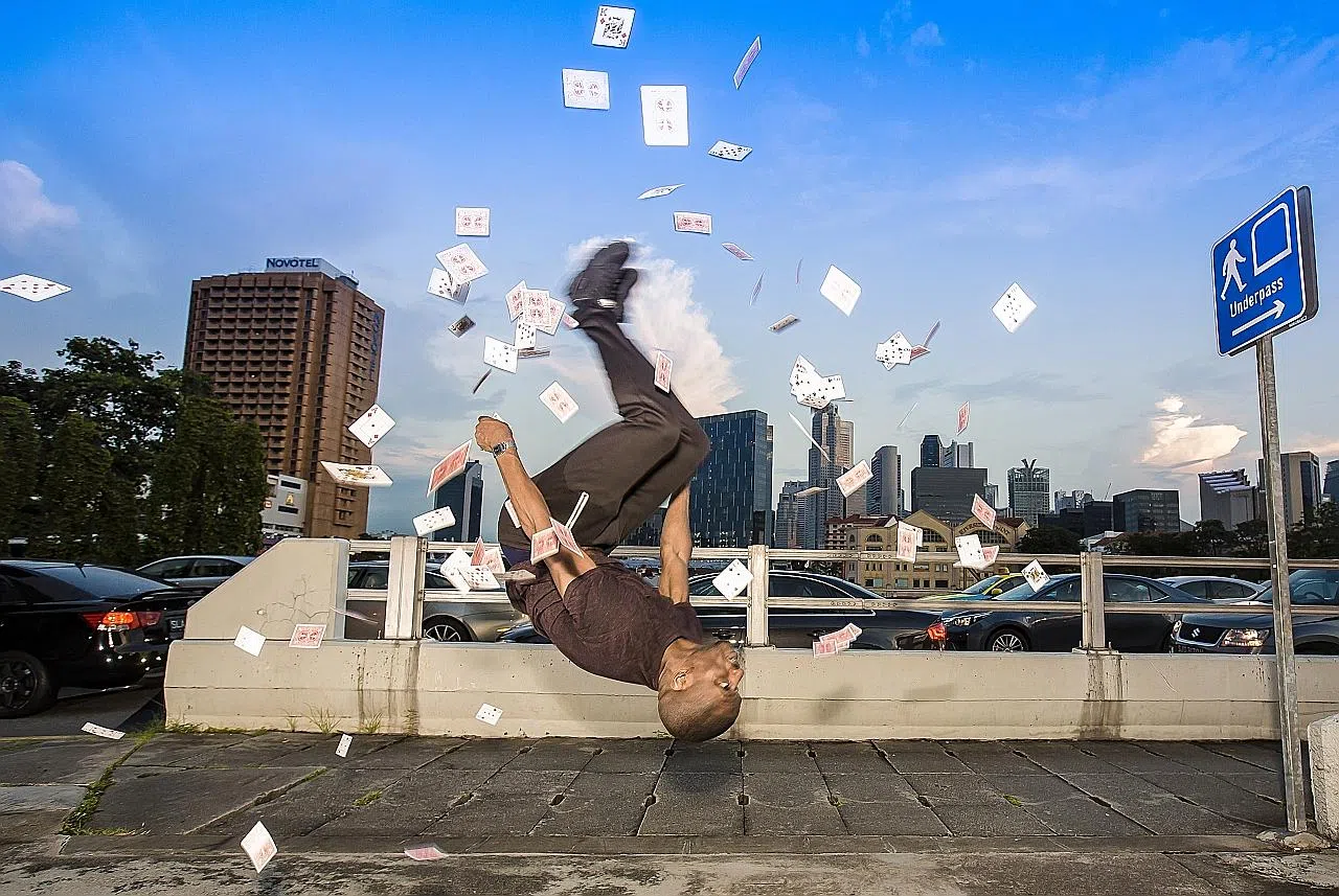 Magical Bones, an English hip hop dancer and magician, did his signature back flip card trick, which is a variation of the pick-a-card routine.
