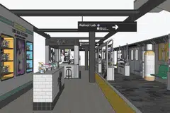 Photo opportunities await, including as a conductor on the "K1851 subway" and standing along a gritty train platform.