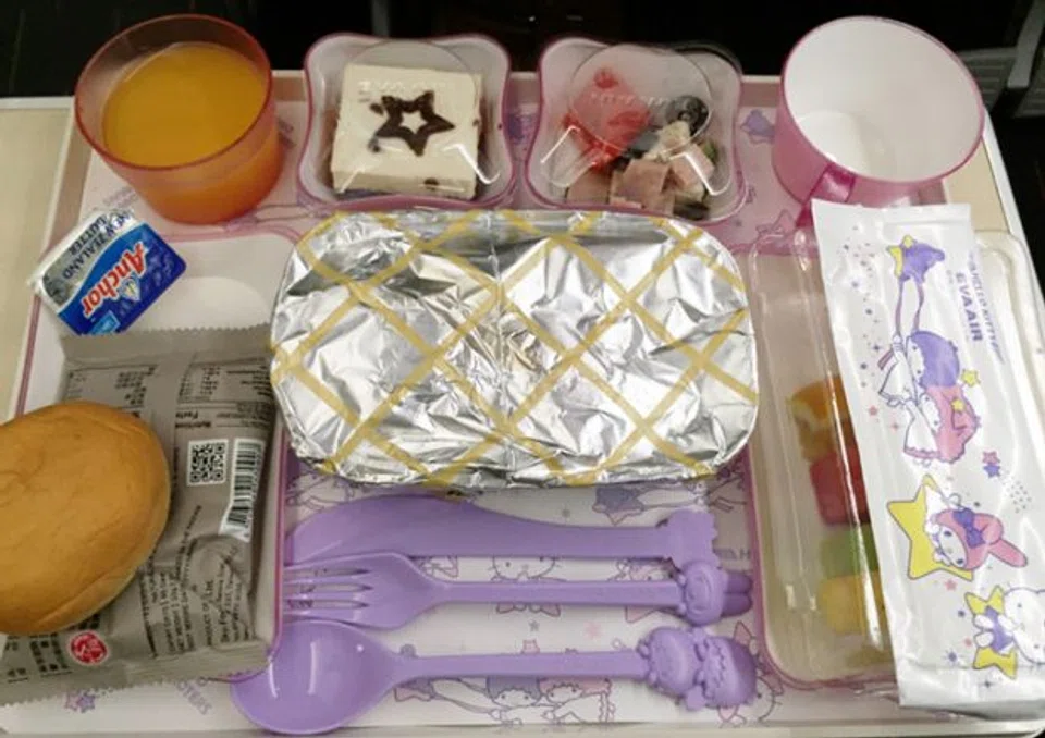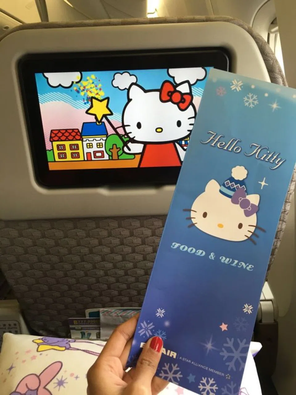 From napkins to cutlery, everything was Hello Kitty. Even the safety booklets featured the famous feline and its friends from Sanrio.