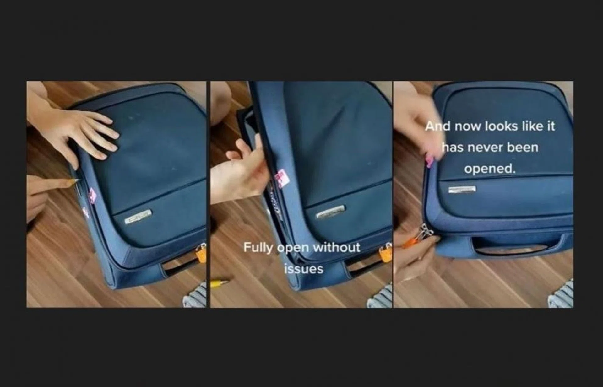 Video shows how to open a zipped bag, leaving lock intact