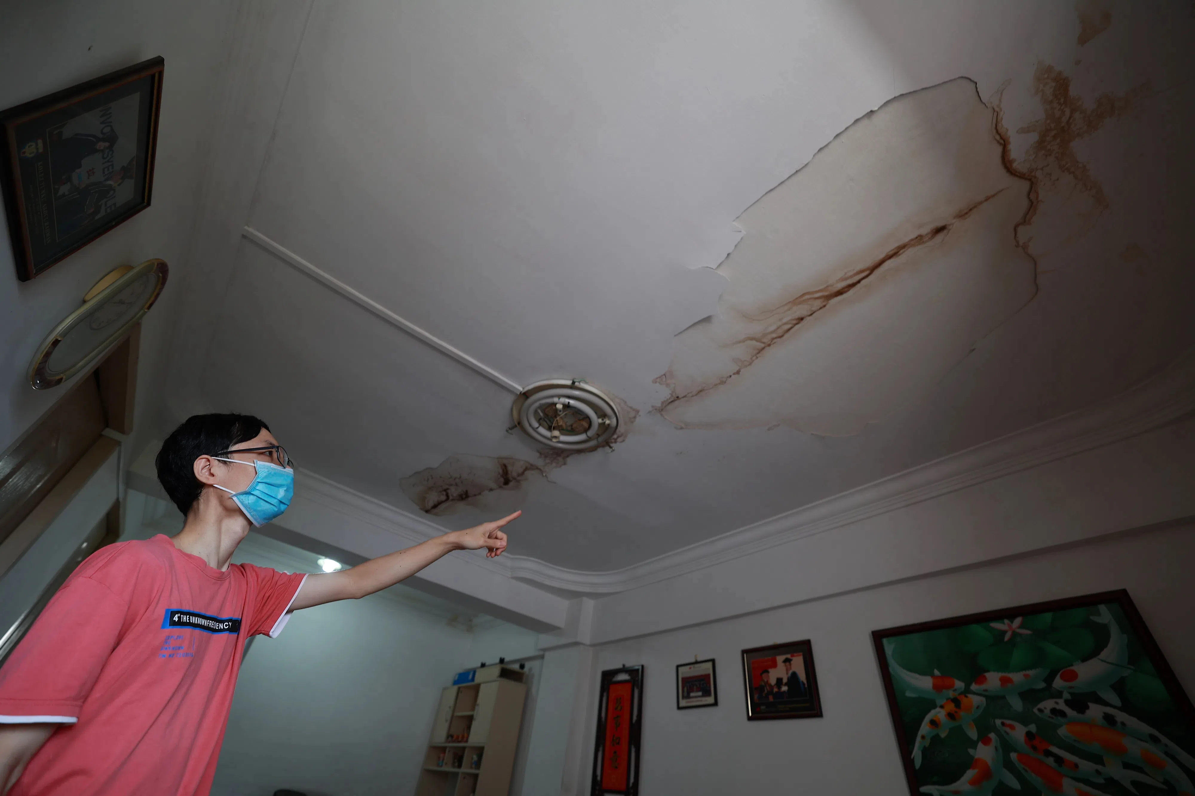 Ms Zhang, 60, who runs a stir-fry stall and lives in the flat on the 11th storey, said she first noticed water dripping from her ceiling last November.
