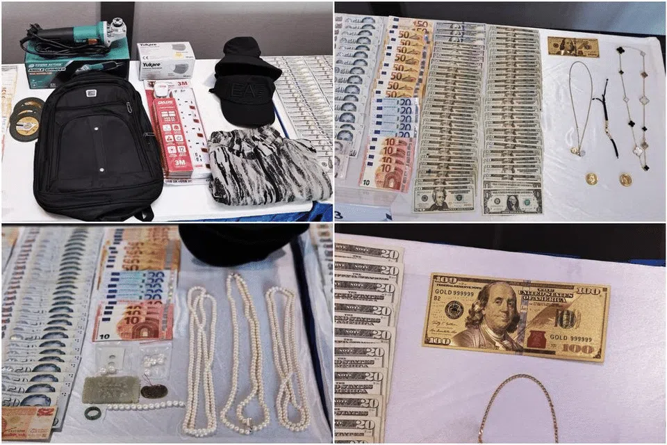 A car, a circular power saw, an assortment of jewellery, as well as cash in various currencies totalling more than $18,000, were recovered from the men.