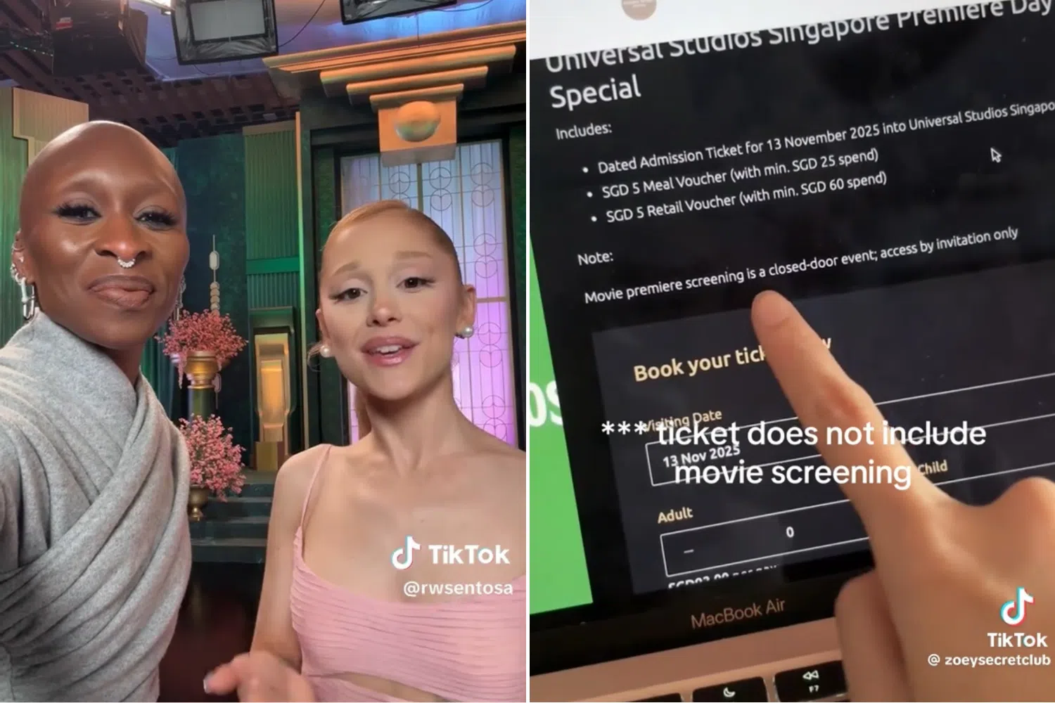 An RWS spokesperson told The New Paper on Oct 14 that, "The Universal Studios Singapore Premiere Day Special includes admission to the park, food and beverage and retail vouchers, and provides guests inside the park with a chance to catch a glimpse of the Wicked: For Good cast on the yellow carpet during the premiere day festivities."