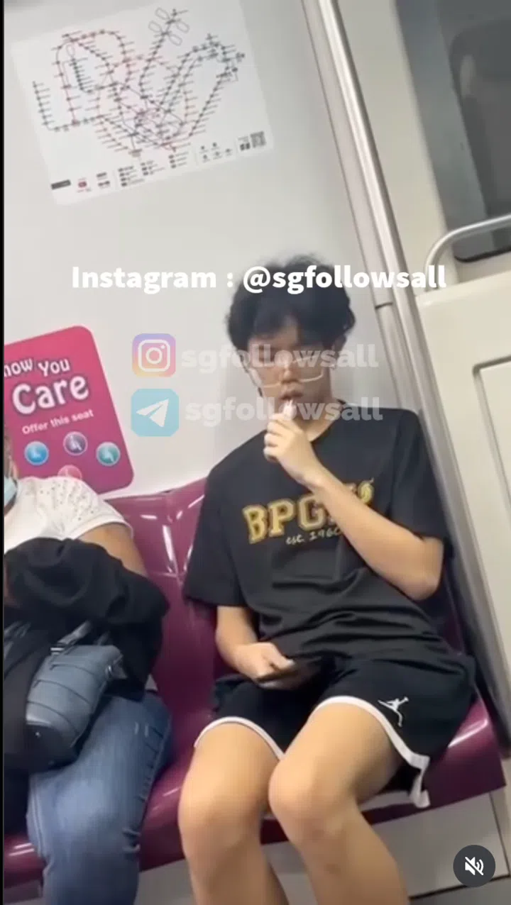 Taken on Monday, this video shared on Reddit of a youngster wearing a Bukit Panjang Government High School T-shirt shows him vaping openly in the MRT.
