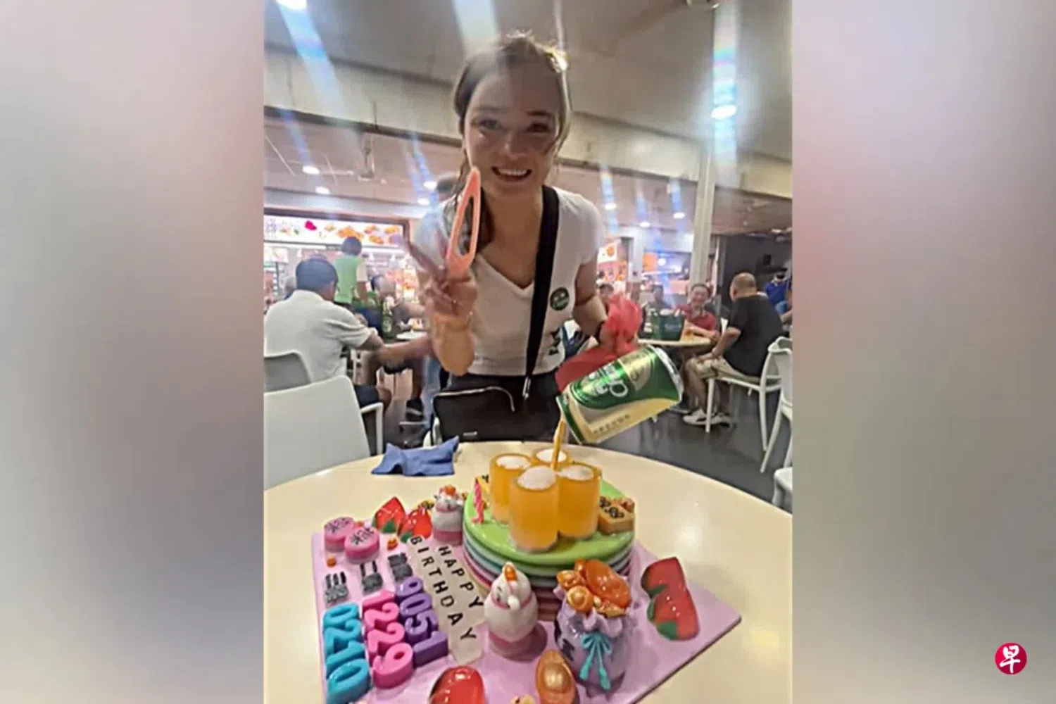 Dozens of customers threw a birthday bash for a beer server at an Ang Mo Kio coffee shop, complete with a cake hiding more than $100 in cash and enough beer orders to cover her week's sales.