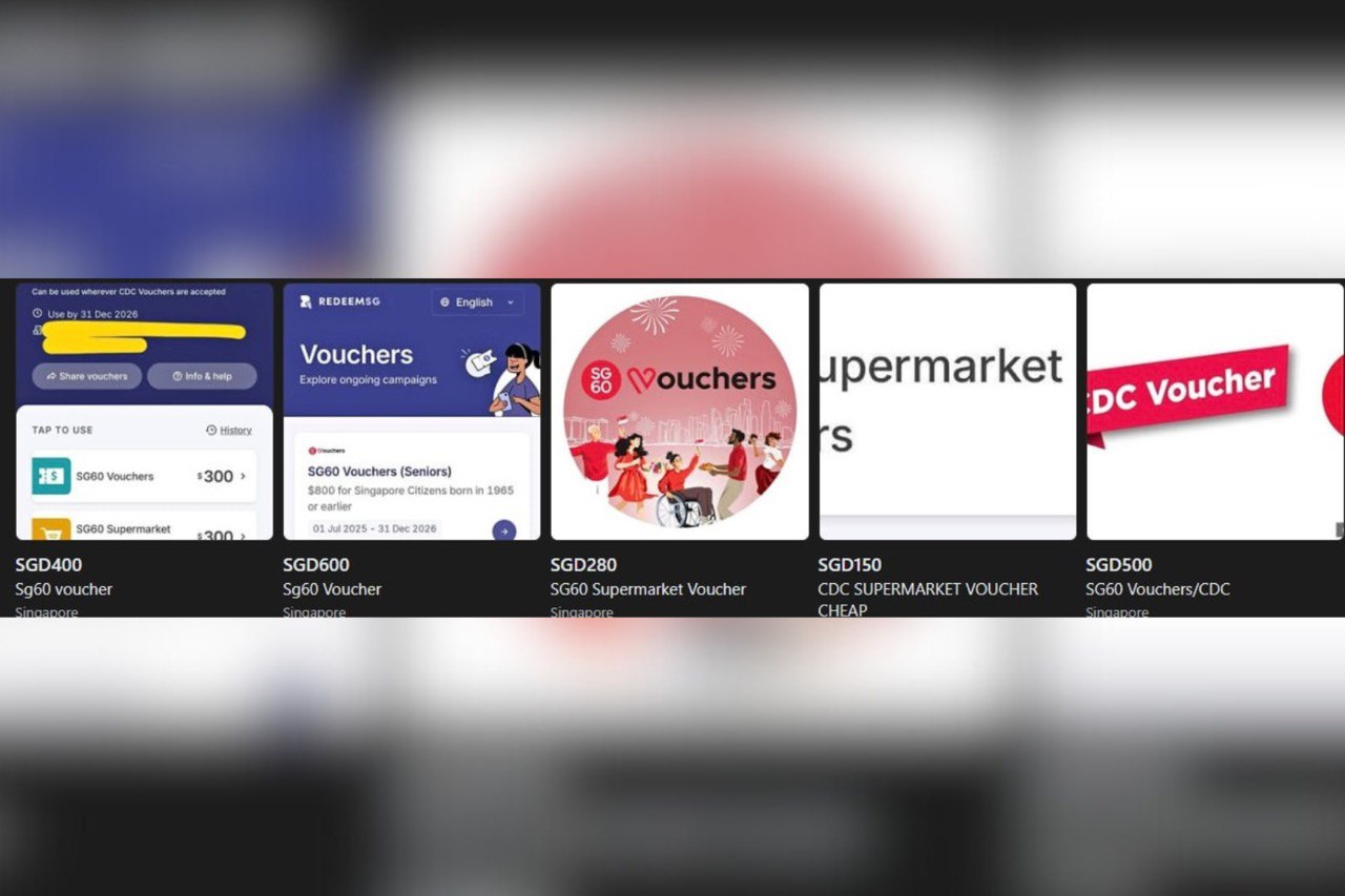Checks by The Straits Times on Aug 7 found at least six listings on Facebook Marketplace selling CDC and SG60 vouchers.
