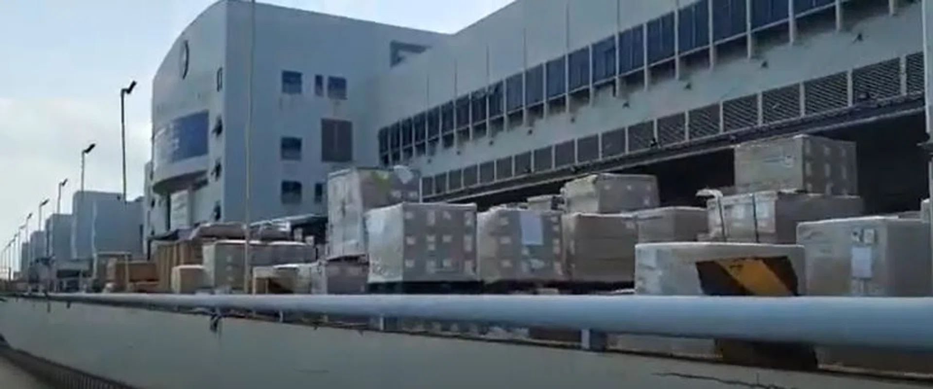 Videos taken from inside and outside Sats' terminals show pallets of cargo sitting untouched, piling up outside the cargo holding areas.