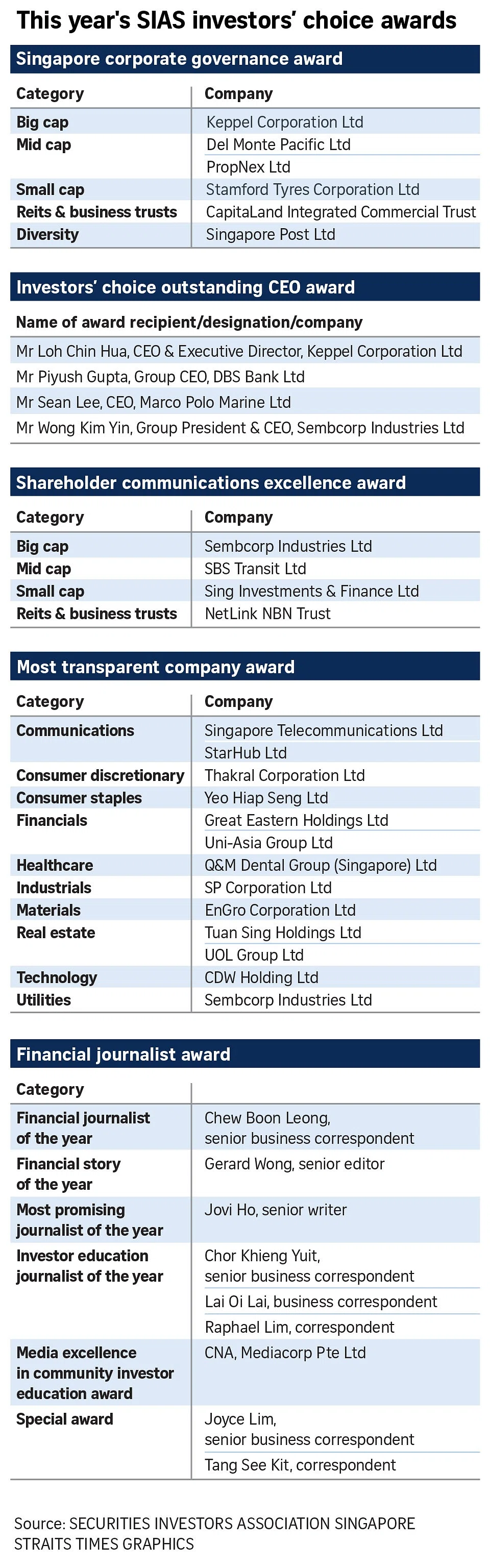 The awards ceremony is now in its 23rd year and was organised by the Securities Investors Association (Singapore) (Sias).