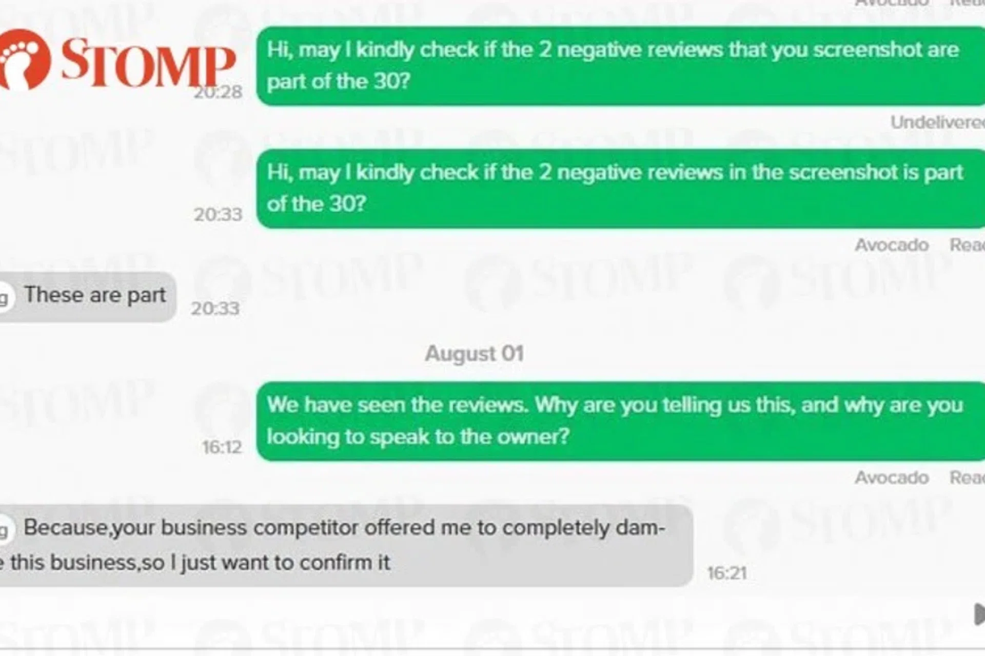 One message read: "If you pay me, I will delete all reviews and give you all details."