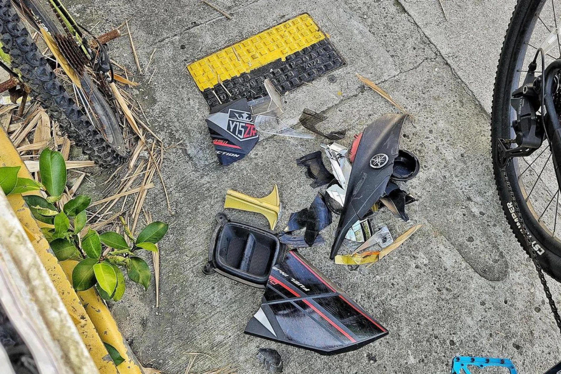Photographs shared with Shin Min Daily News showed the e-bike overturned in the middle of the road, with a dark-coloured lorry parked nearby.