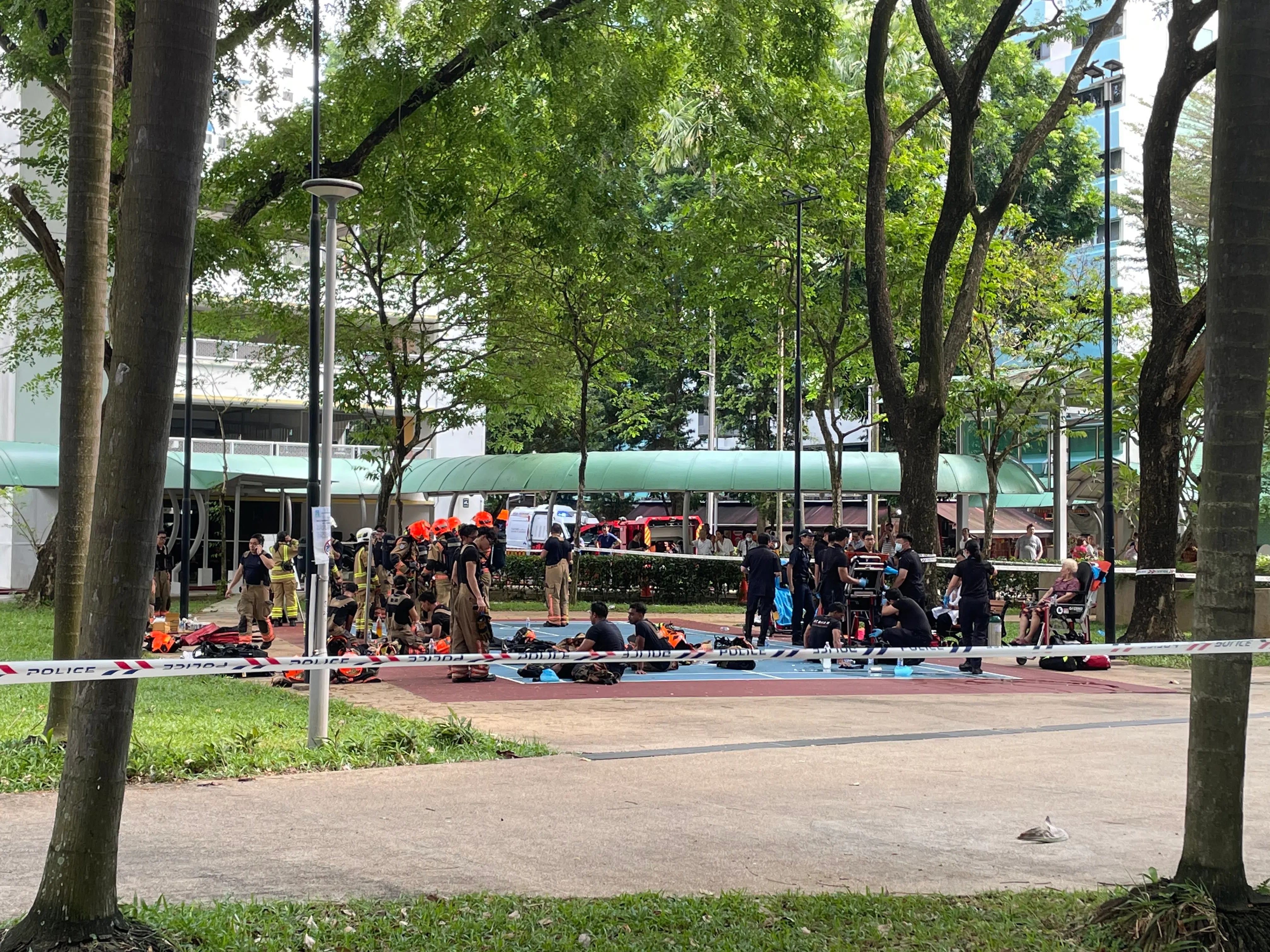 An elderly woman was also seen being wheeled out of the flat by SCDF paramedics.