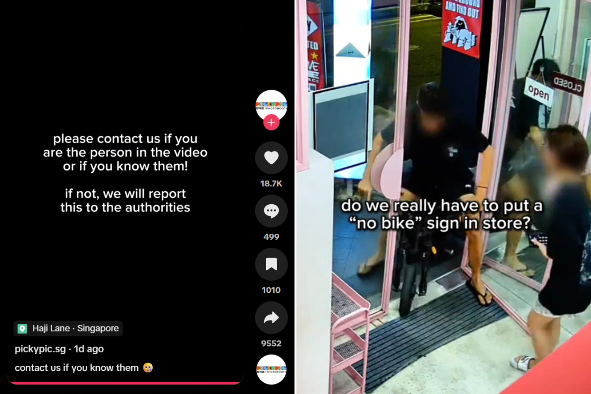 A self-photo studio in Haji Lane has turned to TikTok for help identifying three youths who were caught on camera entering the store, with one riding an e-bicycle and leaving tyre marks on the floor