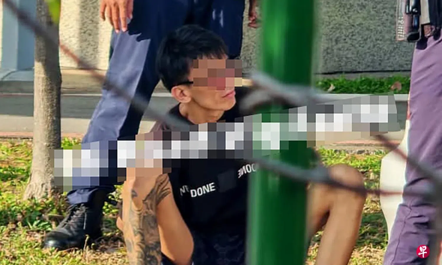 Photos circulating online showed the white BMW surrounded by five police vehicles. In one image, a bespectacled man believed to be the suspect was seen sitting handcuffed on the ground, with visible tattoos on his legs.