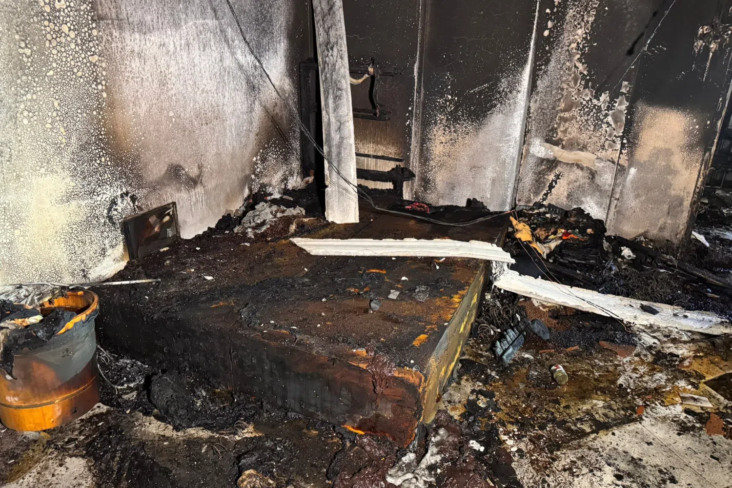 The Singapore Civil Defence Force (SCDF) said on Facebook that the fire in the seventh-floor flat was extinguished with a water jet. It also posted images that showed a bedroom gutted by the fire, with mattress springs on the floor.