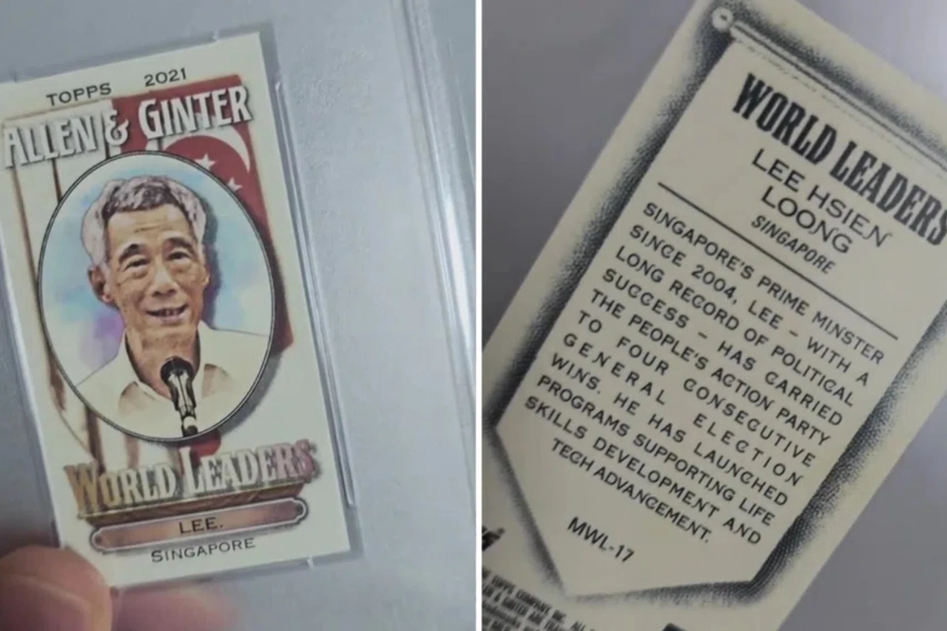 The Lee Hsien Loong card is part of the 2021 Topps Allen and Ginter World Leaders series, which also features the likes of former US president Joe Biden, Canadian ex-Prime Minister Justin Trudeau and Burmese leader Aung San Suu Kyi.