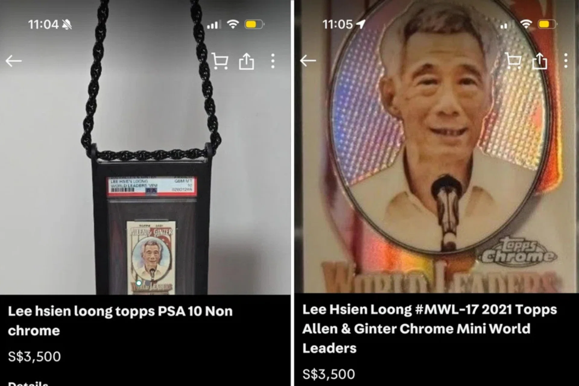 The Lee Hsien Loong card is listed on eBay and Carousell for as high as $2,000.