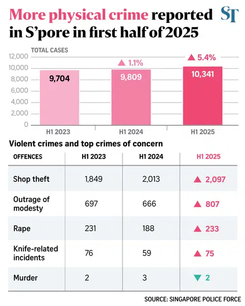 In their mid-year crime brief released on Aug 26, the police said physical crime rose in the first half of 2025, with 10,341 cases reported from January to June 2025.