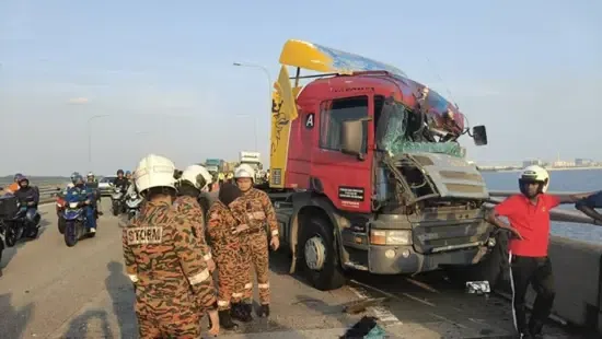 Malaysia's Iskandar Puteri Fire and Rescue Station chief Mohd Faiz Suleiman said an accident involving two lorries carrying propylene glycol had caused a tank from one of the lorries to plunge into the sea from the Second Link bridge.