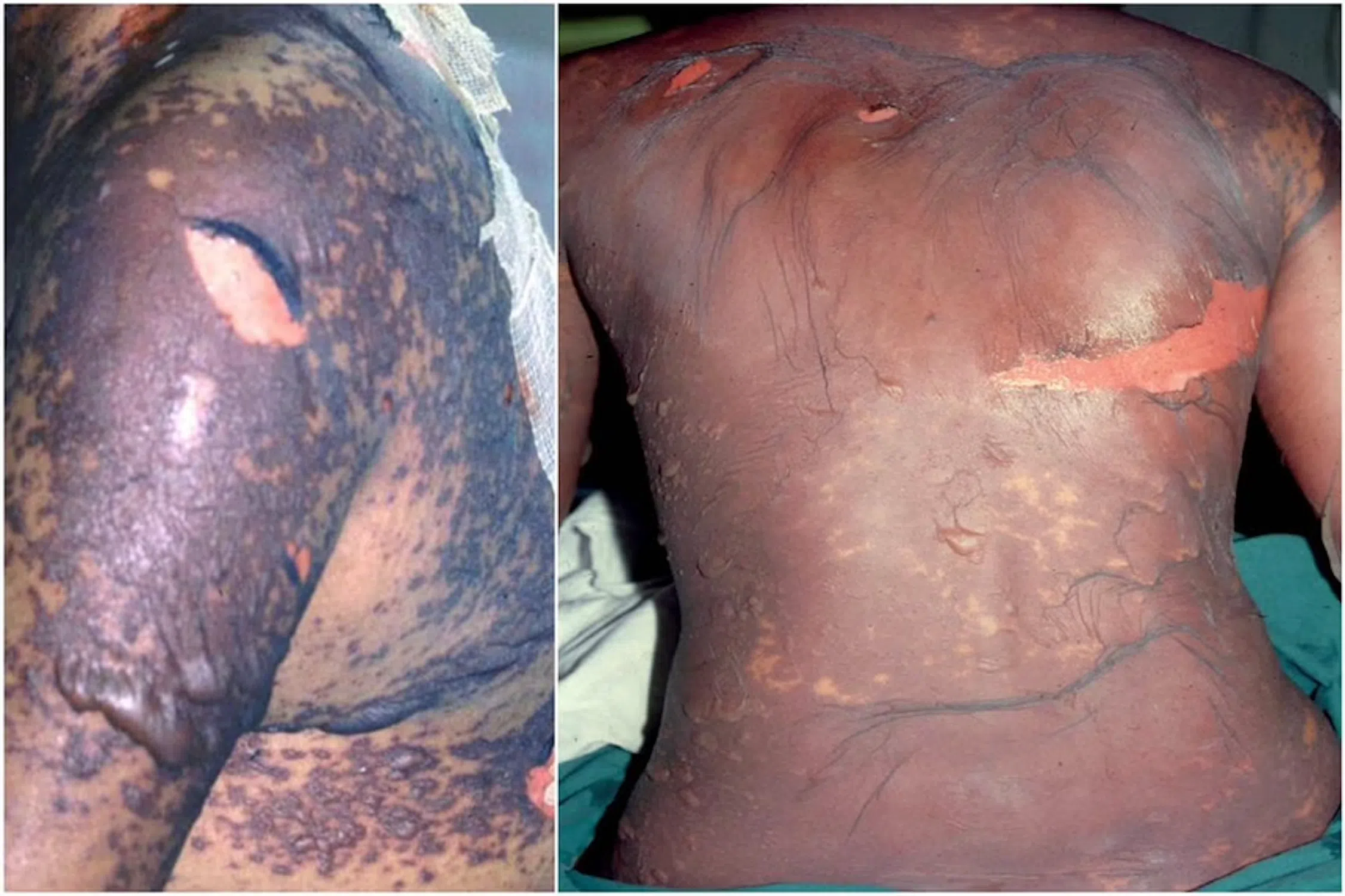 A man in his 20s had blisters across 60 per cent of his body, including sensitive areas such as the face, chest, genitals and soles of his feet.