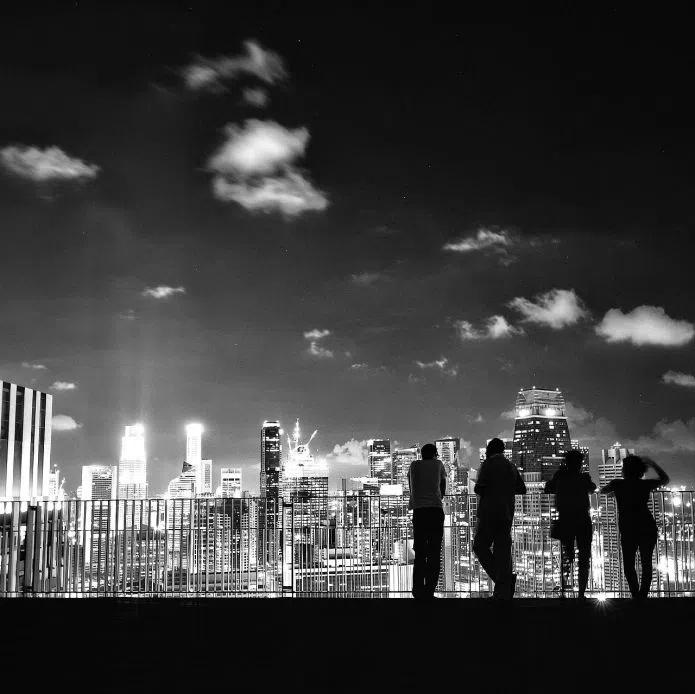Four people viewing the night skyline. - TNP reader Tung H.K.